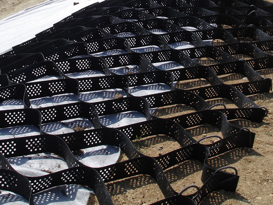 Used for protection and stabilization applications, our Corys Geosynthetics geocell products are three-dimensional, expandable panels made from high-density polyethylene (HDPE), polyester or other polymer materials. We often deploy them to help improve the performance of standard construction materials and erosion-control treatments. Typical applications include:
