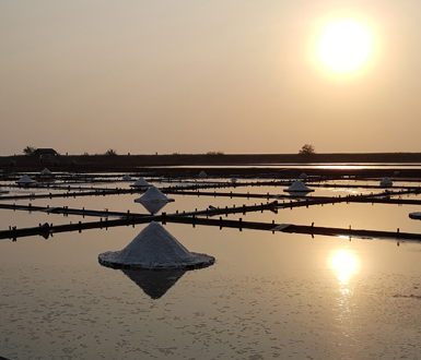 • Evaporation ponds in salt mining operations, to recover salt from the brine solutions. The sun (helped by the low depth of the pond) will then evaporate the water, and leave the salt ready for collection.